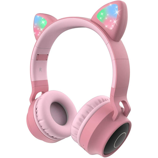 SAMAKids Wireless/ Wired rechargeable Headphones with Cat Ear On-Ear Foldable LED, Compatible with iOS Phone and Android Color : Pink CUTE AND FASHI...