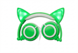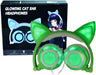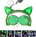 SAMA LED Glow Cat Ear Headphones | Foldable Wired Headset for Kids & Teens (Green/White)